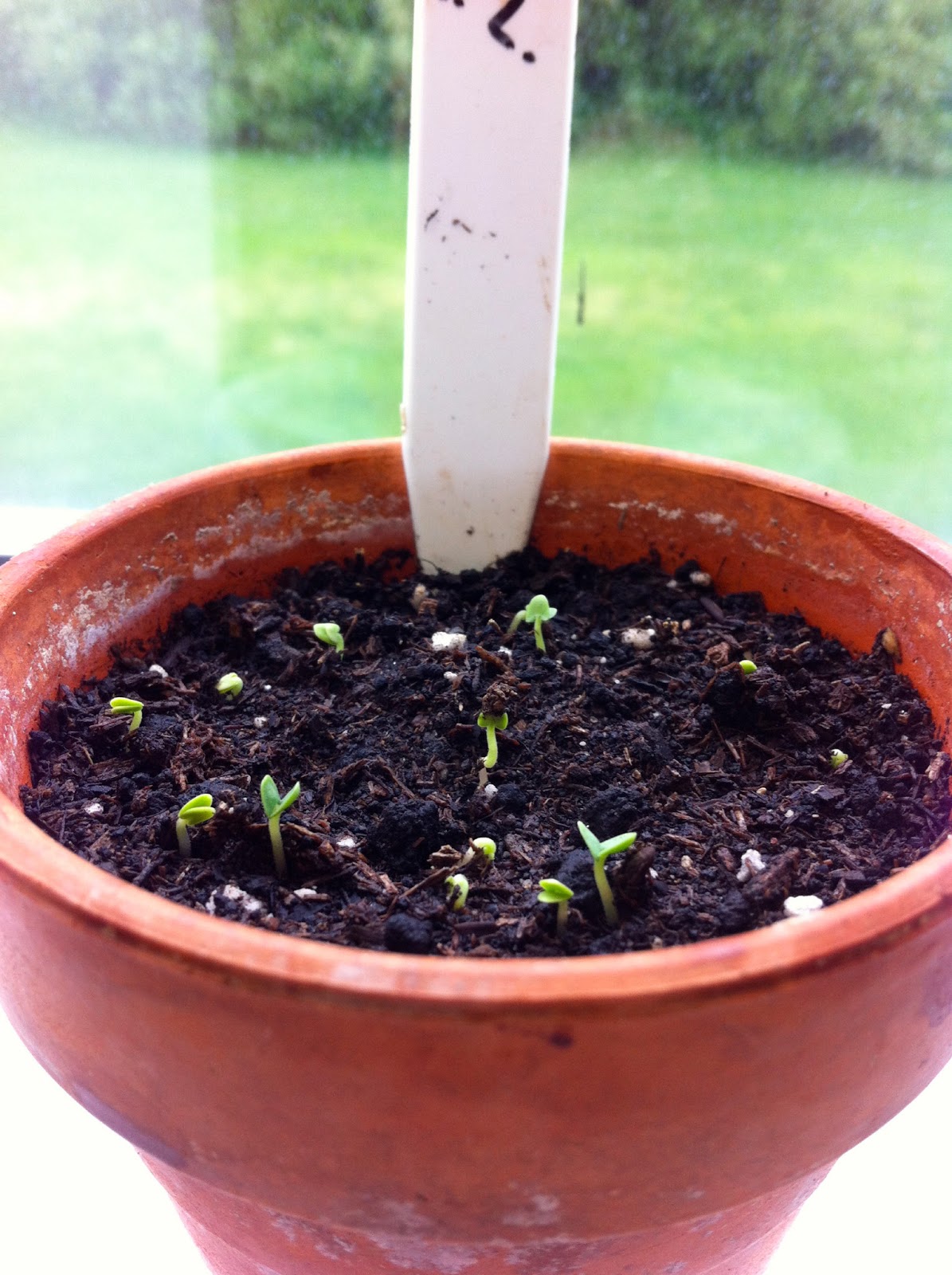 バジルの種を手の平サイズの植木鉢に植えたもの。